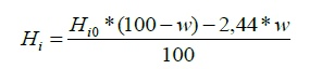To calculate the caloric value (MJ per kg) of wood with specific water content (M %) the following formula can be used:
